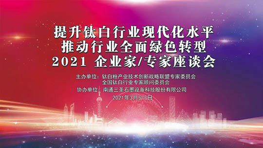 2021年3月6日,由鈦白粉產(chǎn)業(yè)技術(shù)創(chuàng)新戰(zhàn)略聯(lián)盟專家委員會、全國鈦白行業(yè)專家顧問委員會主辦,南通三圣石墨設(shè)備科技股份有限公司承辦的2021年全國鈦白行業(yè)企業(yè)家/專家座談會在江蘇省南通市隆重召開。與會企業(yè)家、專家緊緊圍繞“提升鈦白行業(yè)現(xiàn)代化水平,推動(dòng)行業(yè)全面綠色轉(zhuǎn)型” 會議主題開展了熱烈而務(wù)實(shí)的座談?dòng)懻?,就各自單位、各個(gè)領(lǐng)域2021年度的工作規(guī)劃和關(guān)注問題進(jìn)行了交流探討。會議為全國鈦白行業(yè)響應(yīng)黨的十九屆五中全會通過的《中共中央關(guān)于制定國民經(jīng)濟(jì)和社會發(fā)展第十四個(gè)五年規(guī)劃和二〇三五年遠(yuǎn)景目標(biāo)的建議》統(tǒng)一了思想,吹響了鈦白行業(yè)全面綠色轉(zhuǎn)型的號角,同時(shí),討論、宣布了一系列提升鈦白行業(yè)現(xiàn)代化水平的具體舉措,對全國鈦白行業(yè)2021年乃至整個(gè)十四五期間的發(fā)展具有重要的指導(dǎo)意義。