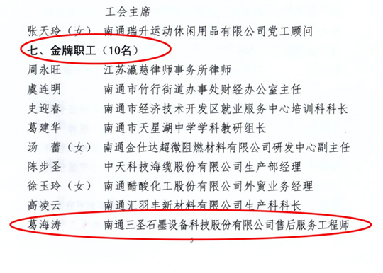 三圣奮斗史中閃耀著這樣一顆璀璨之星,他以堅定的信念和不懈的努力,登上榮譽(yù)巔峰,成為開發(fā)區(qū)當(dāng)之無愧的一名“金牌員工”,并被三圣集團(tuán)董事會、三圣工會授予“終身榮譽(yù)職工”的光榮稱號。