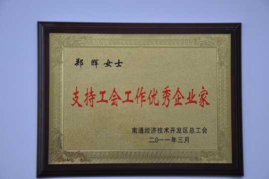 今年,開(kāi)發(fā)區(qū)“支持工會(huì)工作優(yōu)秀企業(yè)家”評(píng)選工作盛況空前,候選人之間競(jìng)爭(zhēng)激烈。我公司工會(huì)委員會(huì)申報(bào)的候選人、公司總經(jīng)理鄭輝,憑借其對(duì)工會(huì)工作細(xì)致認(rèn)真的鼎力支持,最終得到了區(qū)總工會(huì)的高度認(rèn)可,成為“支持工會(huì)工作優(yōu)秀企業(yè)家” 榮譽(yù)稱(chēng)號(hào)八位獲得者之一,也是唯一的一位女性企業(yè)家。在此,我們?nèi)w三圣人都應(yīng)該向她表示由衷的祝賀!