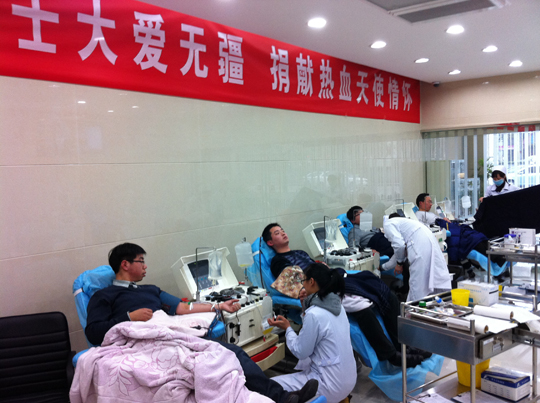 1月19日,患病同事趙亞東的家屬向公司發(fā)出了緊急求援,希望能有同事為趙亞東定向捐獻(xiàn)成分血。短短的半小時,質(zhì)檢部劉小冬、朱浩,國際部石玉成,事務(wù)部嚴(yán)建新在殷總的帶領(lǐng)之下迅速趕到市血站下屬的愛心獻(xiàn)血屋獻(xiàn)血。雖然遺憾的是,由于捐獻(xiàn)成分血對捐獻(xiàn)人的各項(xiàng)身體指標(biāo)要求較高,五人均未達(dá)到要求,但他們的善舉仍然讓趙亞東的家屬非常感動。與此同時,公司、工會、愛心基金會聯(lián)合發(fā)出了為趙亞東獻(xiàn)血倡議,率先得知消息的科室員工積極響應(yīng),紛紛簽字響應(yīng)獻(xiàn)血倡議,稍后得知消息的生產(chǎn)部員工也是積極響應(yīng),紛紛表示愿意為趙亞東獻(xiàn)血,甚至考慮到春節(jié)期間的用血。